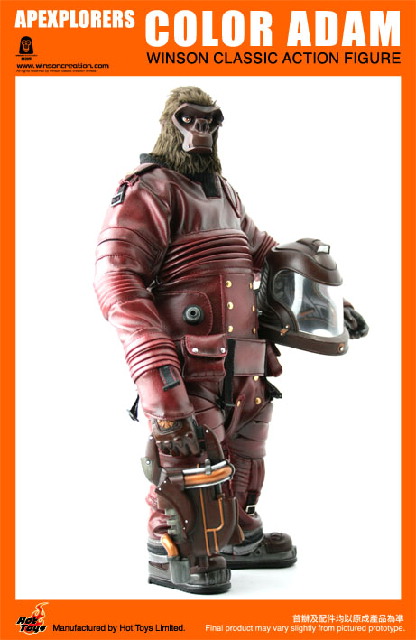 HOT TOYS x WINSON CREATION OM091018 Apexplorers Space Adam (Color Version) is 1/6th scale and 35cm tall. It is fully poseable with 20 points of articulation. This Space Adam Collectible figure will come with full set of costume and accessory including Gear Belt, Space Clothing, Inside Jacket, Blaze Gun, Space Boots, Space gloves, Ape Hands, Space Power Engines, Space Helmet, Apes DNA Test Tube and Power Controller. Target release date: 2nd season, 2010.