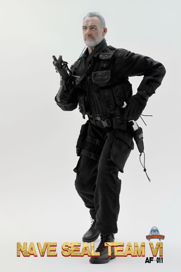 Art Figures AF011 1/6 scale NAVE SEAIS TEAM VI 12-inch figure will come with an Authentic likeness head sculpt, 12-inch figure body, black T-shirt, combat uniform, Omega EOD vest, white underpants, magazine pouch, general utility pouch, Omega pistol holster, black balaclava / mask, tactical gloves, XM177 rifle with magazine x 7, Tactical Weapon light, M9 pistol with surefire tactical light & magazine x 2, MP5 Submachine gun with magazine x 3, Gerber BMF tactical knife / Knife sheath, Combat boots