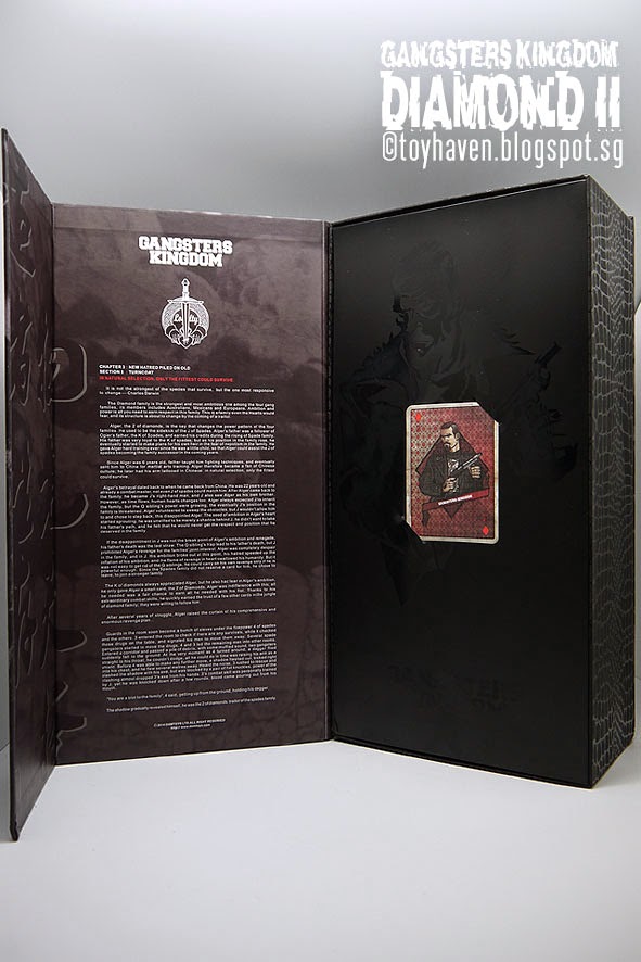 As with all the boxes, the inside flap lays out the background story and history of each character and every figure also comes with his own 1:1 scale playing card