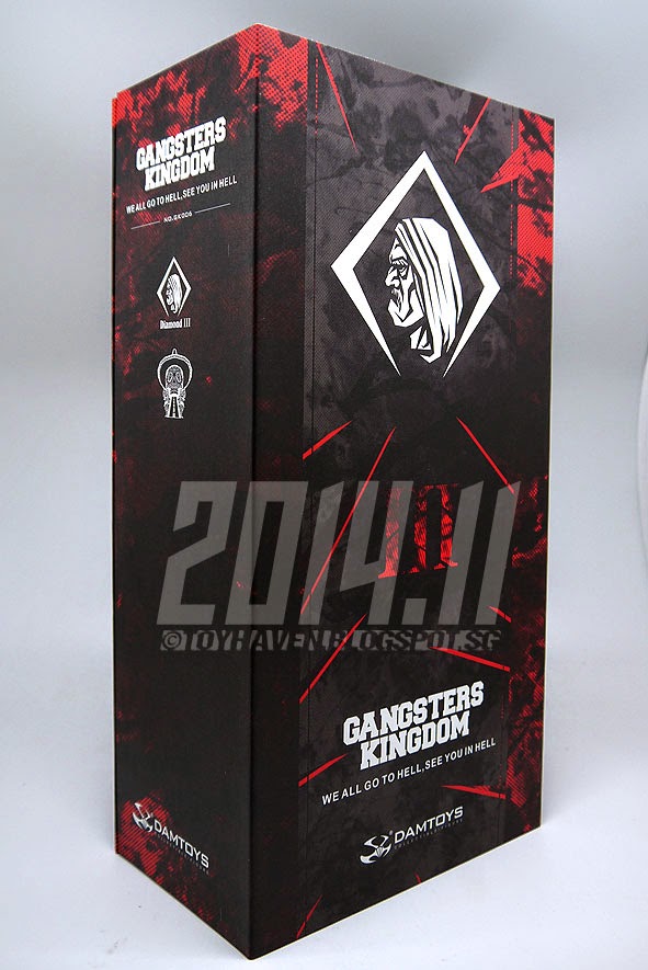 First up is the DAM Toys Gangsters Kingdom 1/6 scale Diamond 3 figure (preview pictures HERE). This is the sixth Gangsters Kingdom figure that Dam Toys has released, if you don't count the exclusives which are the DAM Toys STGCC 2014 Gangsters Kingdom GK001EX Spade J 12-inch figure (with a limited run of 300 pieces) and the DAM Toys CICF 2014 Exclusive Gangsters Kingdom - Side Story - 1/6 scale Saxon 12-inch figure. There's the regular Spade J, 2, 3 and 4 followed by Diamond 2 and now 3. Not everyone can get the exclusive figures because of the limited run and quantities produced.