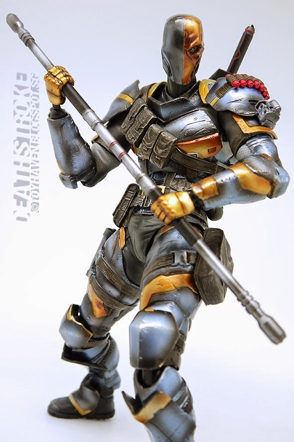 NEXT: "Batman: Arkham Origins" fights Play Arts Kai Deathstroke 10-inch (25.5cm) tall action figure. Check out my toy blog post with action shots, and action poses of the battle royale.