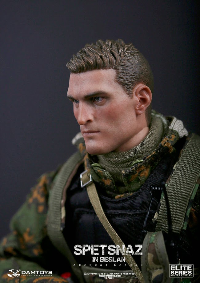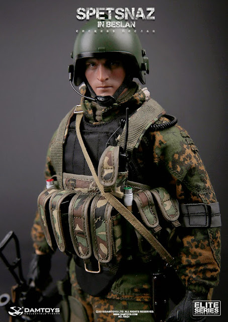 Dam Toys 1/6th scale SPETSNAZ in Beslan (2004) 12-inch Russian military figure (Dam no.78021) will come with 1/6 Head sculpt, dam action 2.0 body, scarf, tactical gloved palms x 3, Altyn helmet, Altyn helmet visor, mask (blk), shirt, combat suit (partizan), combat pants (partizan), belt (blk), leather belt (blk), x-boots assault boots (blk), defender-2 low–profile armor vest(blk), M23 chest rig (woodland), vx radio with radio connector, ko-3 pistol holster, stetchkin apb pistol, apb pistol silencer, apb pistol buttstock, apb pistol mag x 2 + 1, as val assault rifle, pso-1 optical sniper sights, pso-1 lens cap, pso-1 goggle, as val sling, as val 20-rd mag x 3 + 1, as val 10-rd mag x 1, pmk bag, ak mag pouch, kneepad (blk), soviet nr-43 combat knife, scabbard (leather), rop flares x 2, rgd-5 grenade, arm tactical reflective stripe