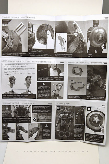 The instruction sheet included with this set also covers the Hot Toys MMS243 "Captain America: The Winter Soldier" 1/6th scale Captain America and Steve Rogers Collectible Figure combo set (see the preview pictures HERE). A simple advice to all collectors: Always read the instructions before doing anything else.