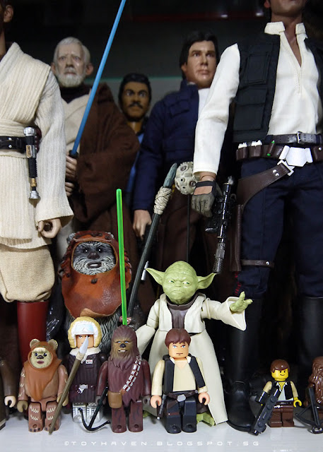 And the pictures below show how they look with other Star Wars figures. Bandai 1/6th scale Yoda at 11 cm (4.25 inches) looks undersized when placed with all the other 1/6th scale figures. Yoda doesn't look to be of the correct height. Looks like a miss for Bandai this time around.