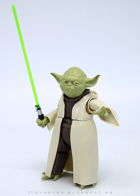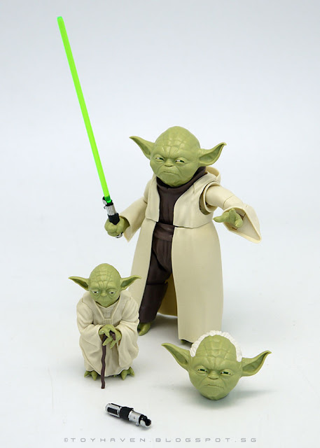 There are two sizes included, the 1/6th scale version and a 1/12th scale version. The 1/12th scale Yoda is pretty much a statue when assembled but the 1/6th scale version does have some articulation.