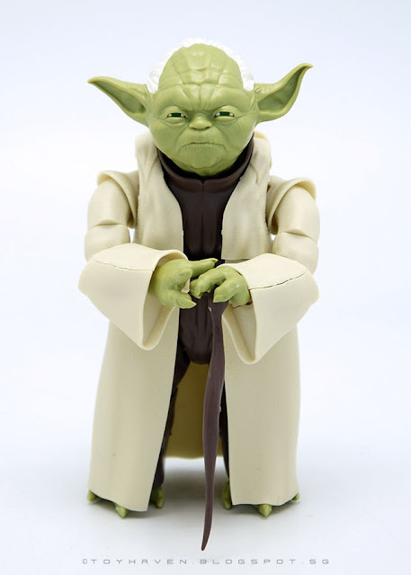 Having gotten the Bandai 1/6th scale Star Wars Stormtrooper Model Kit which turned out to be quite impressive with full articulation (see the full action figure review posted on my toy blog HERE and HERE as well as comparison pictures with Hot Toys 12-inch Stormtrooper HERE), I decided to try my hand at this Bandai Star Wars 1/6th scale Yoda model kit.
