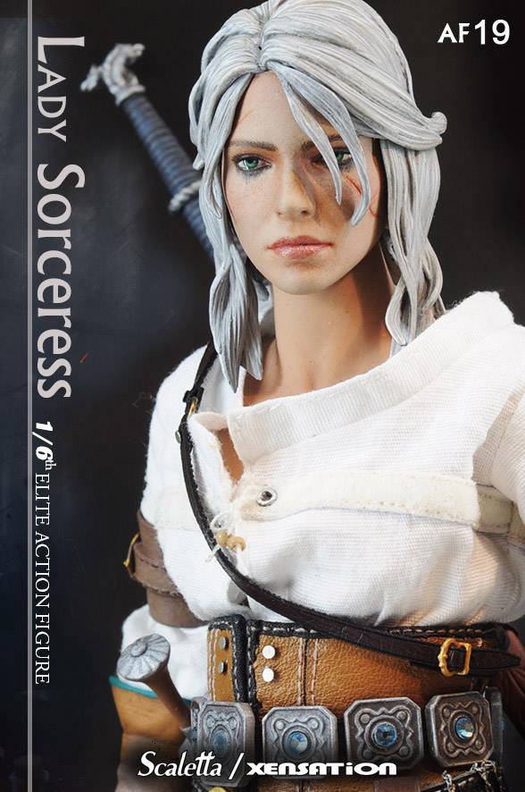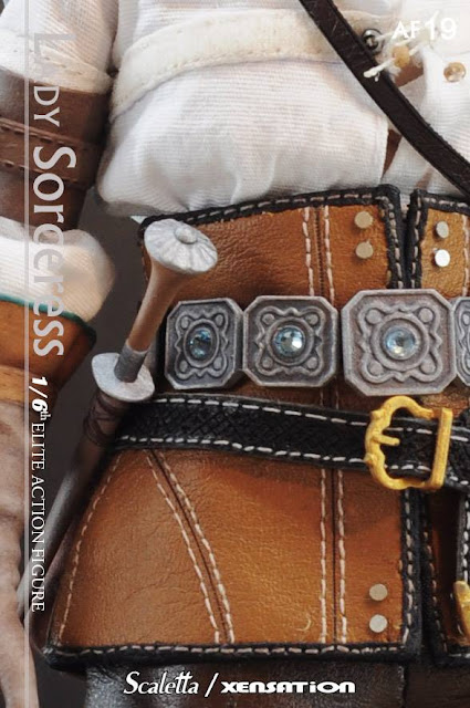 Xensation x Scaletta 1/6th scale The Lady Sorceress 12-inch female action figure features: head sculpt, female body, white bra, white top, brown pants, sword, sheath, dagger, Two belts, boots, long sleeve gloves, Four hands