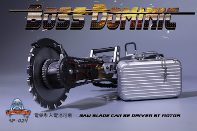 Art Figures AF-024 1/6th scale Boss Dominic 12-inch figure features: authentic head sculpt with Vin Diesel likeness, 12-inch figure BODY, 2 pairs of hands, Chainsaw with belt (Saw blade can be driven by motor), Tactical shield, 1911 Pistol with Magazine, Holster, Shotgun shell x5, Pliers x2, MOTOROLA PTX760, signal flare, Mask, suitcase with missile launch codes, HANDCUFFS, Cross necklace, T shirt, black combat suit with knee pad & elbow pad, Tactical Vest, Tactical Boots