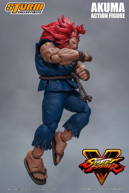 Storm Collectibles 1/12th scale Street Fighter V Akuma action figure set includes: 3 x Interchangeable Head Sculpts, 8 x Interchangeable Palm / Hands, 1 x Gohadoken Effect, 2 x V-Trigger Effect - Dohatsu Shoten, 1 x Stand with Street Fighter V Logo. Bonus item: Additional Gi with 神人 “Shin” kanji at the back (not shown in the images)