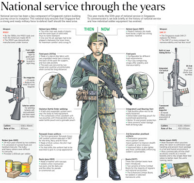 This year marks the 50th year of national service in Singapore. To commemorate it, The Straits Times look briefly at the history of national service and how individual soldier equipment has evolved.