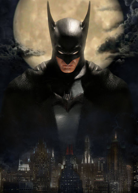 COSTUME: Cowled Head Spandex outfit with body armor detail Leather-like cape 3D chest insignia Spiked wrist cuffs and SAP gloves Utility belt with grapple gun holster Highly detailed tactical boots