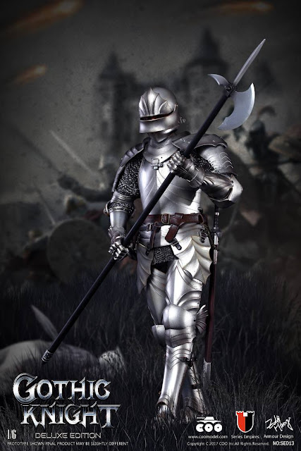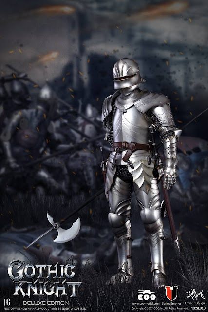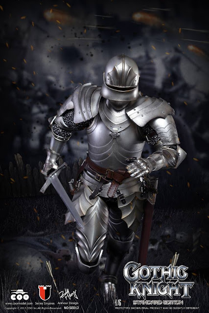 COOMODEL SE013 1/6th scale Series of Empires (Die-cast Alloy) Gothic Knight (Exclusive Edition) 12-inch Collectible Figure specially features: head sculpt, body, Eight (8) pieces of interchangeable palms (A couple of bare fists and open palms,and a couple of open palms and weapon holding hands in silver armor)