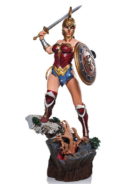 Sideshow and Iron Studios are proud to present the Wonder Woman Prime Scale Statue. Produced with concept and art developed by Ivan Reis (DC Comics official artist) of Chiaroscuro Studios. This polystone statue is hand-painted and features two heads, interchangeable hands that can display holding the Lasso of Truth or shield and sword and an LED light-up base.