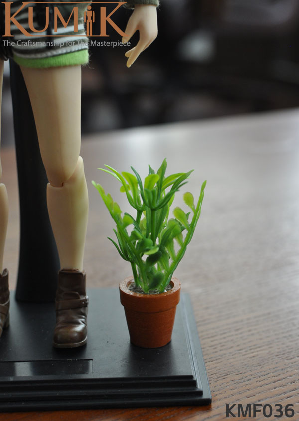 Kumik KMF036 1/6th scale 12-year-old Girl Action Figure Parts list: 1/6th scale child body, 1/6th scale Girl Head sculpt, Outfit set, Figure stand, Revolver, Plant