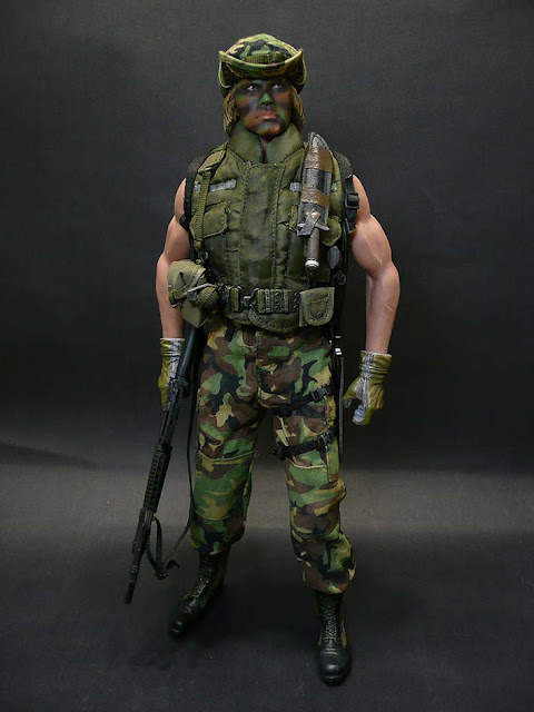 Of all the members of Major Alan "Dutch" Schaefer's (Arnold) team, only Private Billy Sole (Latham) is produced. Blain Cooper (Jesse Ventura) would have been nice, with his custom-made handheld 7.62mm GE M134 Minigun nicknamed "Ol Painless". There was also Mac (Bill Duke) with his M60E3 machine gun, Poncho (Richard Chaves) with his MP5 (or civilian HK94, if you want to be specific) and HK 40mm cyclinder grenade launcher, and Hawkins (Shane Black), also armed with a MP5.