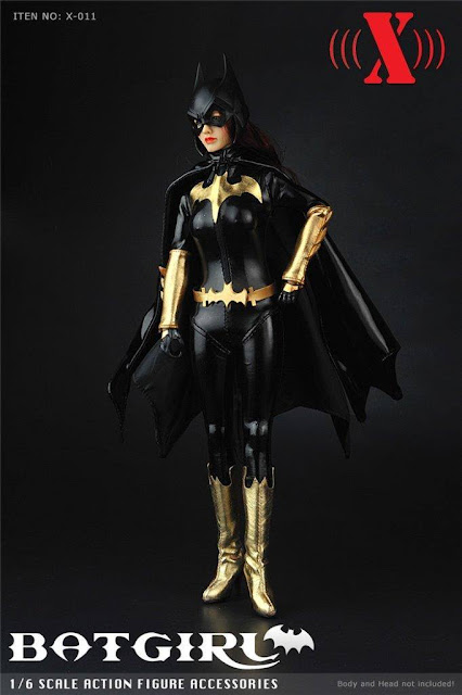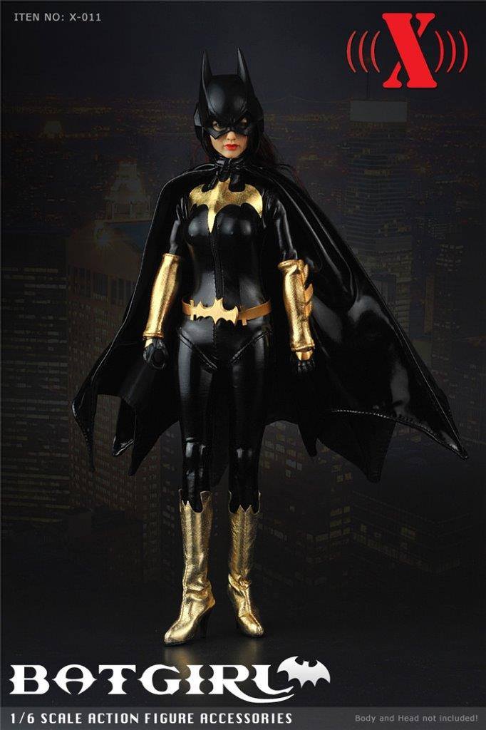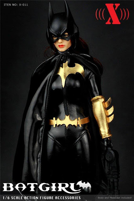 This Bat Girl Outfit Set comes complete with bodysuit, gloves, boots and some weapons. It's reminiscent of old-school Batgirl from the TV show a la Yvonne Craig but all in black and not purple for a slightly more serious look. The Custom 1/6th scale Bat Girl Outfit Set Features: PVC helmet, Gold badge, Bodysuit, Forearm bracers, Cloak, Hollow boots, Belt, Gloved hands. Batarang, Gun. NOTE: Body and head sculpt not included (display only).