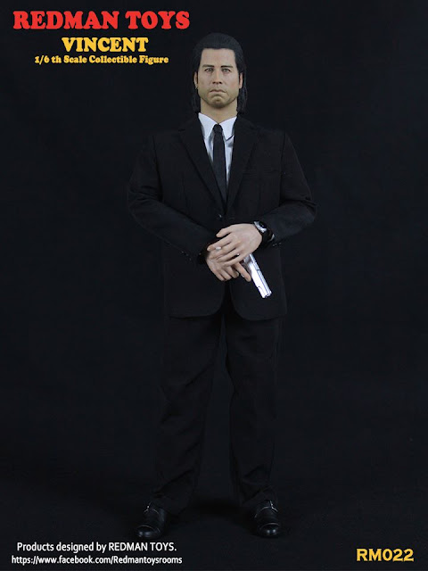 Redman Toys RM022 1/6th scale Vincent 12-inch Collectible Figure will come with Head Sculpt, Black Tie, Black Suit, Black Pants, White Shirt, Black Belt, Black Shoes, T-shirt, Shorts, Slippers, Watch, Book, Cigarettes, Pistol, Body with Hand