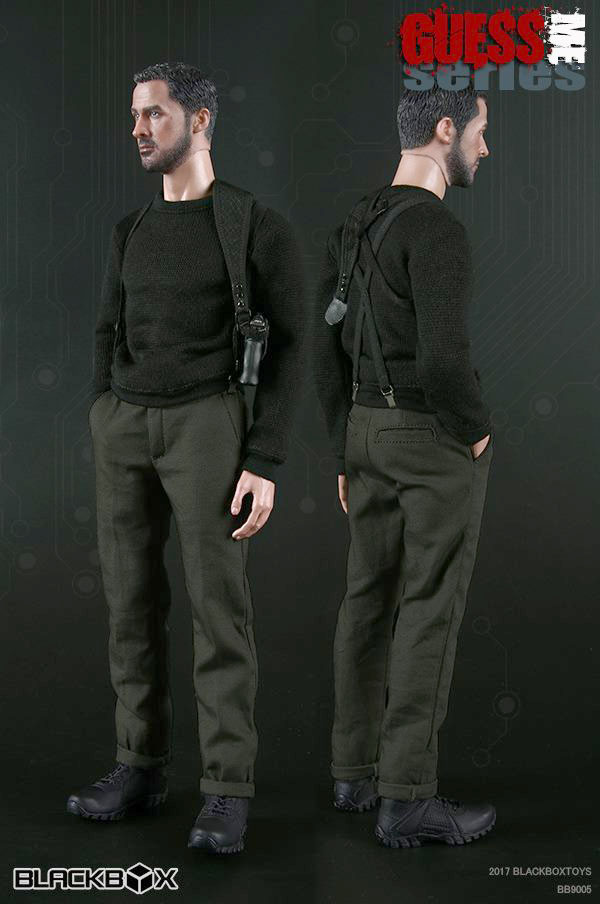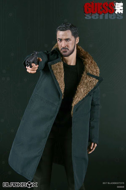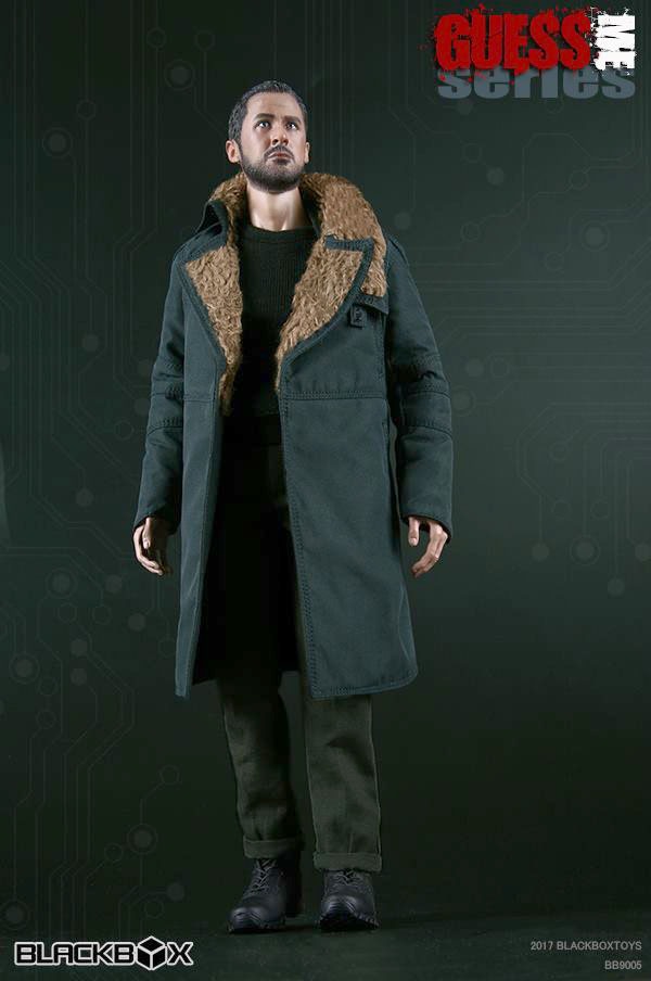 Blackbox Bb9005 1/6th scale Guess Me Series - “Replicant Killer” 12-inch figure Set Includes: Head Sculpt “K”, Bb2-Body With Relaxed Hands & Feet, Gun Holding Right Hand, Faux Fur Lined Open Front Leather Coat (Bg), Long Sleeved Knitting Sweater (Blk), Modern Stretch Military Chino Pants (Od), Suspenders (Blk), Shoulder Holster (Blk), E07008 Strike Tactical Bootlace Boots, Blaster Pistol