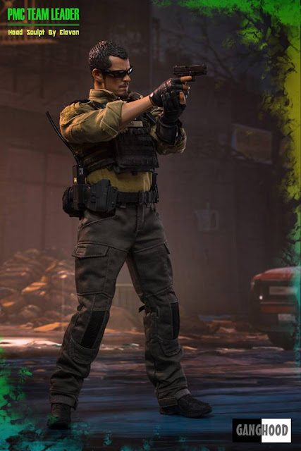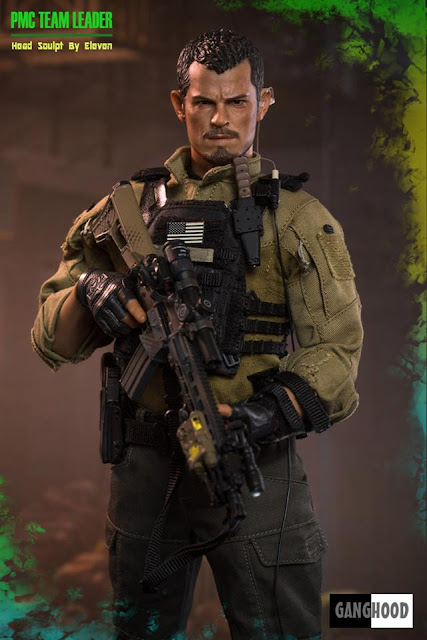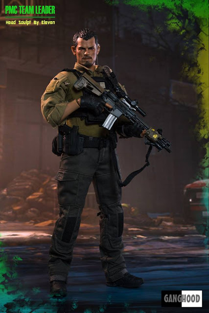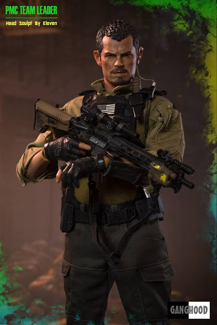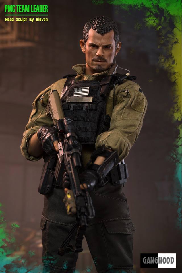 GangHood 1:6 scale PMC Team Leader 12-inch Figure will come with Head Sculpt - Sculpted and painted by Eleven, 12-inch Figure Body, Headset & U94 PTT, PRC-148 Radio, Padded Undershirt, Assault Shirt AR, Assault Pants AR, Duty Belt, Cobra Tactical Belt, Fingerless Assault Gloves, Jumpable Plate Carrier, Modular Belt System Blowout Kit Module, Modular Belt System Pistol Holster Module, Modular Belt System Pistol Mag Module, Modular Belt System Radio Module, Modular Belt System Rifle Mag Module, SI-6 Assault Boots, Patches, Kneecap, Tactical Arm Map Pouch, Tactical Dagger with a WASP handle, Tactical Sling, 416 Assault Rifle, Angled Fore Grip, 1-8x24 PM II Scope, LA-5 PEQ, M-300 Tactical Light with Remote, Micro T1 Scope with Offset Mount, Magazines, G-17 Pistol, Pistol Magazines