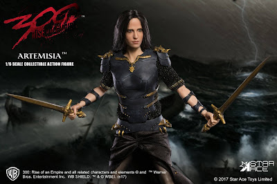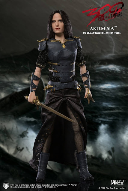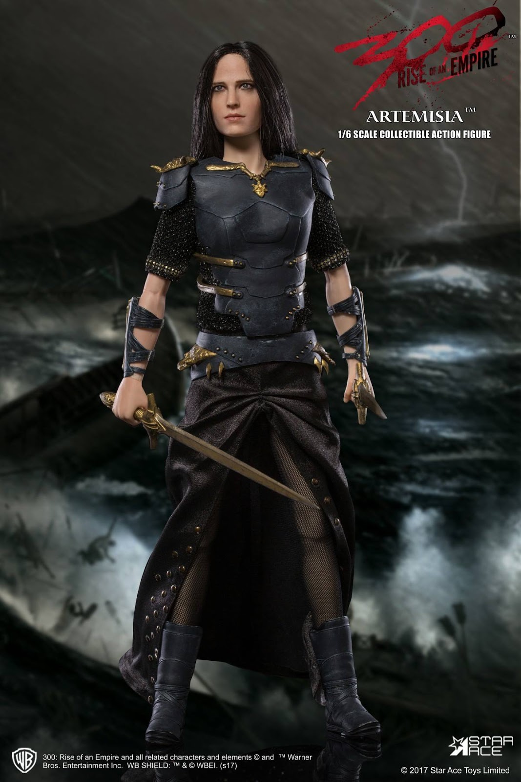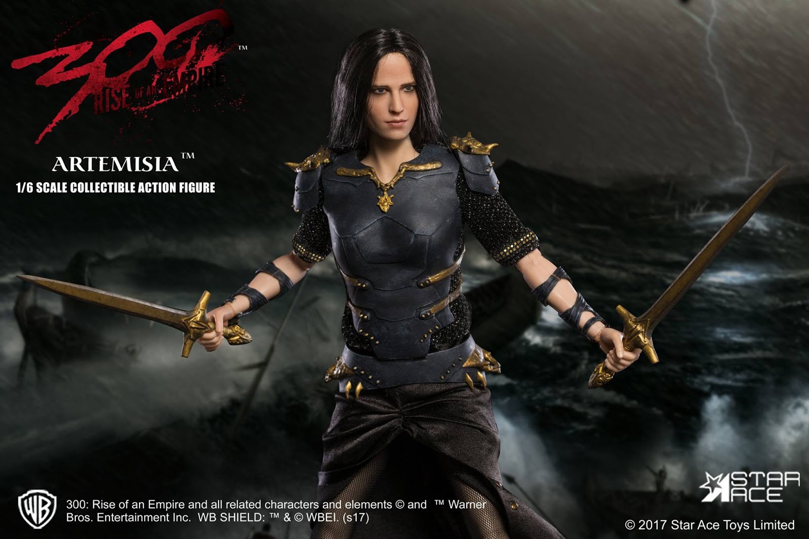 STAR ACE TOY - SA0045 - 300: Rise of an Empire 1/6th scale General Artemisia Collectible figure features: Fully realized authentic likeness of Eva Green as General Artemisia in the movie “300 : Rise of an Empire” in 2014 with accurate facial expression and detailed skin texture | 1:6 scale body, approximately 29 cm tall with over 30 points of articulation | Five (5) interchangeable hands including: pair of open hands, right hand for holding bow or sword or dagger, left hand for holding sword, left hand for holding the arrow