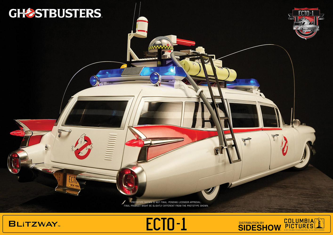 Blitzway is proud to officially unveil the other hero of the Ghostbusters... the ECTO-1! Blitzway has spent countless hours developing an immortal masterpiece that no one has ever seen before. They have studied every facet of this vehicle and have paid attention to every level of detail including accurate dimensions, shape, and structure as evidenced in the 1959 Cadillac.