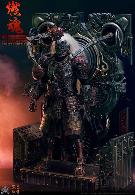 DARKCROWNTOYS “BURNING SOULS” series limited edited (365 sets only worldwide) Product specifications: Detailed head sculpt of mechanical interpretation of the Red Oni, with real fur hair | Removable face mask to reveal mechanical details inside | Fully articulated action figure body | 7 interchangeable hands ( 1 pair of weapon holding, 1 pair of fist, 1 pair of flex and 1 pipe holding)