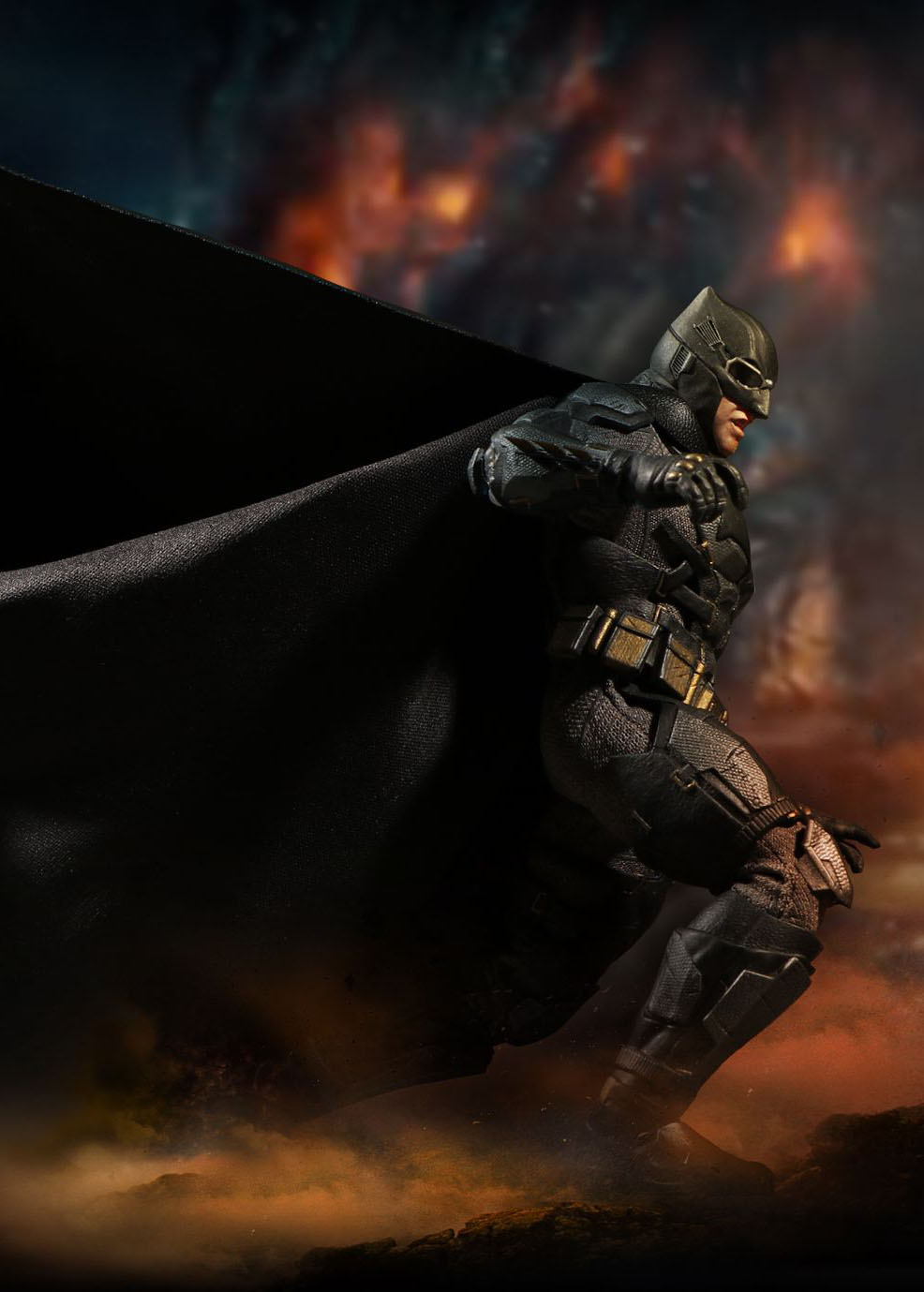 Fueled by his restored faith in humanity and inspired by Superman's selfless act, Bruce Wayne enlists newfound ally Diana Prince to face an even greater threat. Together, Batman and Wonder Woman work quickly to recruit a team, a Justice League, to stand against this newly awakened enemy. Revealed for the first time in Justice League, the figure showcases the never-before-seen Tactical Batsuit with visible upgrades.