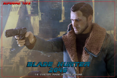 Supermadtoys 1/6th scale Blade Hunter 2046 Hunter K 12-inch custom made action figure (Limited Edition 300 boxes) Parts list: Normal Head Sculpt, Battle Damaged Head Sculpt, Action Figure Body, Hands x 4, Black Gloved Hands x 2, Trench Coat with wire for posing, Black Top, Khaki Pants, Boots, Holster, Old Hunter Blaster, New Hunter Blaster, Police Badge, Joi Emanator, Eye Scanner, Wooden Horse, Wine Glass