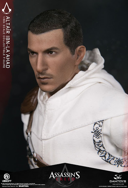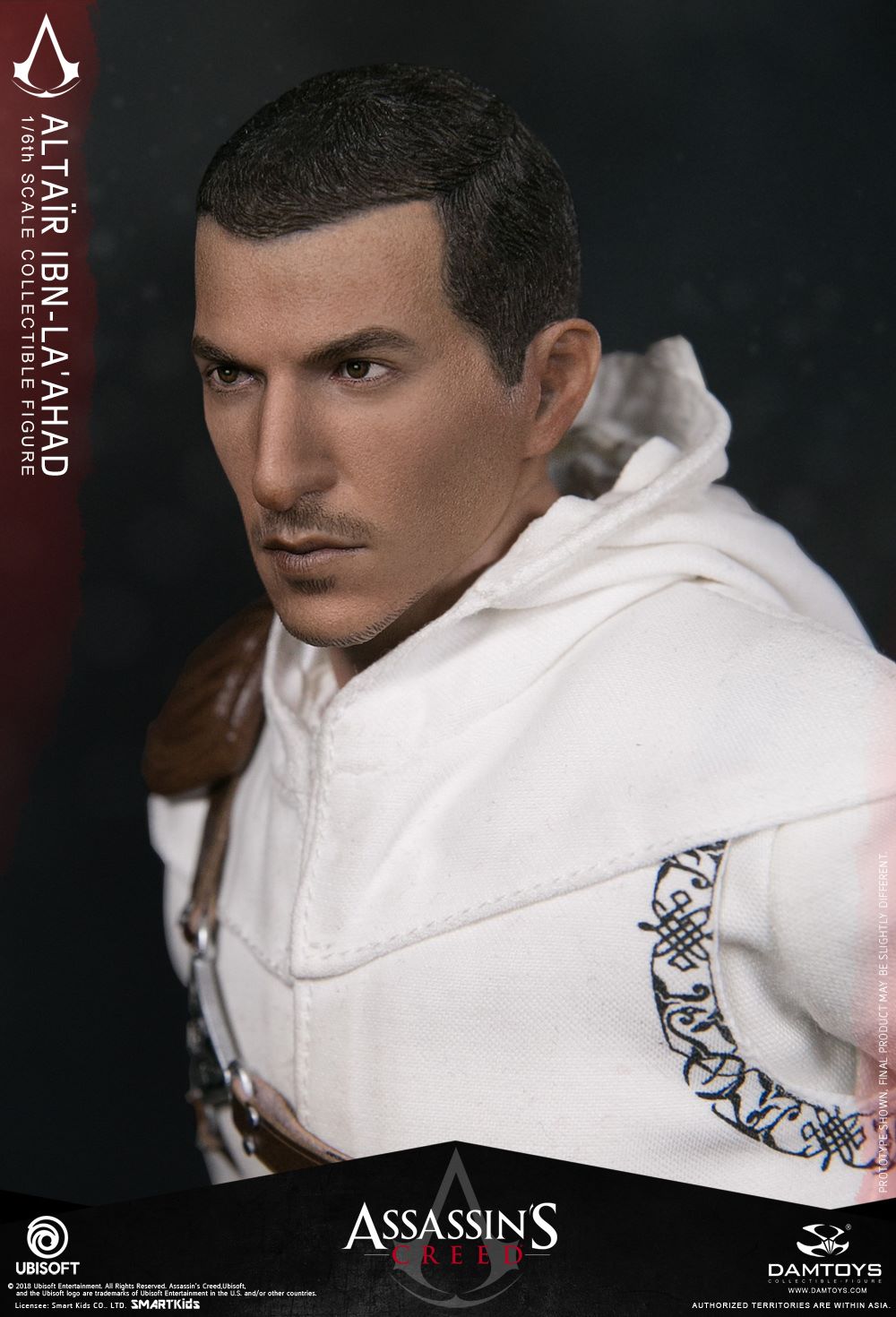Ubisoft x DAMTOYS classic videogame "Assassin's Creed" Altaïr the Mentor 1/6th scale Collectible Figure (DMS005) Special features: Highly detailed head sculpt, DAM muscle action body, Eight (8) pieces of interchangeable hands including: pair of open hands, pair of hands for holding dagger / sword, pair of relaxed hands, pair of fists