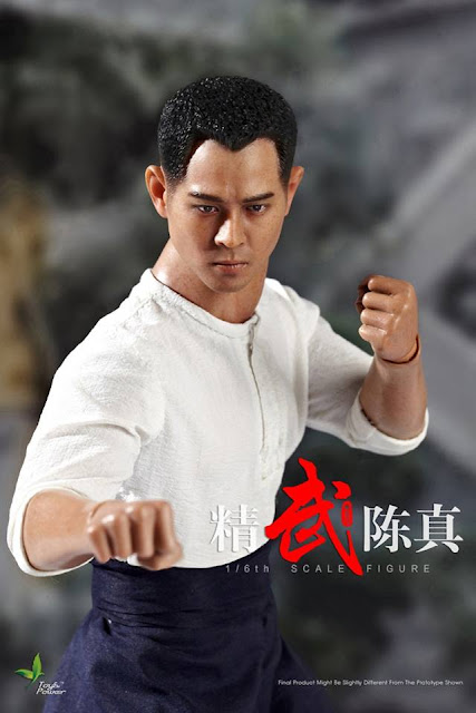 Toys Power 1/6th scale Jing Wu - Chen Zhen 12-inch Action Figure features: Head sculpt, Body, Replaceable hands x6, Long lapel uniform, Long lapel trousers, corner cap, leather shoes, Kung Fu jacket, Kung Fu pants, cloth shoes, Socks, cloth belt, towel, Leather trunk