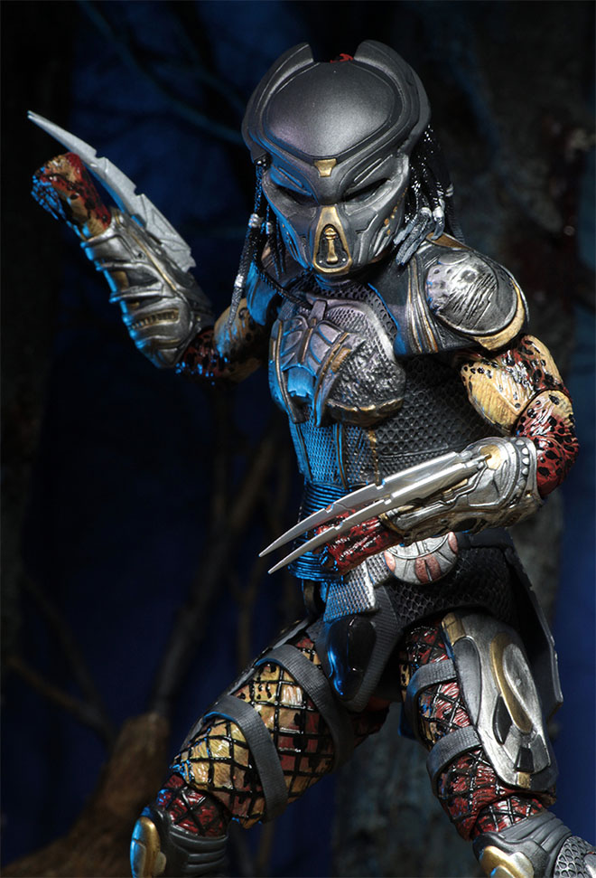 From the upcoming movie The Predator comes the NECA Fugitive Predator. It stands over 8 inches tall and features over 30 points of articulation. Includes 2 interchangeable heads (masked and unmasked), interchangeable forearms, 4 interchangeable hands, 4 wrist blades, and articulated shoulder cannon.