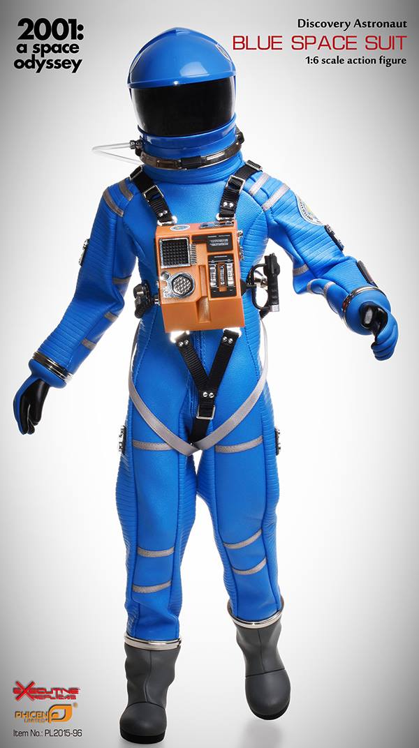 Executive Replicas is proud to present the first ever Blue 1:6th scale Discovery Astronaut space suit. Executive Replicas "2001: A Space Odyssey" 1:6 scale Discovery Astronaut Blue Space Suit Features: Space helmet with connecting hoses, Oxygen tank, Front control unit, metal connector rings, interchangeable gloved hands, interchangeable regular hands, Removable astronaut suit, space boots, Stand with Printed Logo, Full Color Packaging. NOTE: figure not included with set.