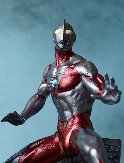 This dynamic sculpture is a new and unique take on the classic character. The painted metallic colors provide a different finish from the ULTRAMAN of the past. The beautiful contrast with the wrecked buildings on the base is another highlight.