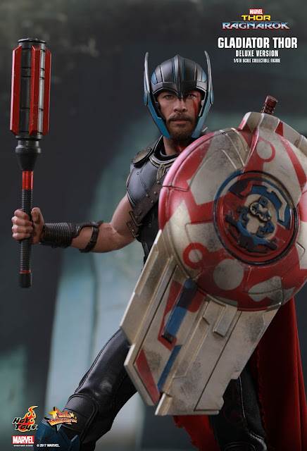 Making a brand new appearance in Thor: Ragnarok, Hot Toys is delighted to present to you the latest 1/6th scale Gladiator Thor collectible figure with astonishing likeness of the actor Chris Hemsworth as Thor in the movie. The beautifully designed 1/6th Gladiator Thor collectible figure features a newly developed head sculpt with Gladiator marking, a specially tailored gladiator armor with a red-colored cape, a Gladiator helmet, a shield, an assortments of weapons including swords, daggers and a mace.